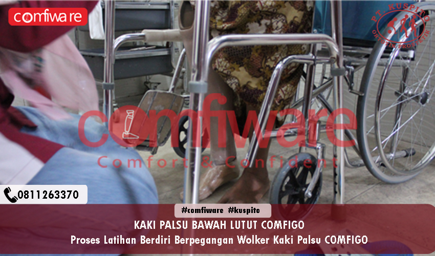 | FOTO di PT Kuspito Solo Proses Latihan Berdiri Berpegangan Wolker Kaki Palsu COMFIGO |